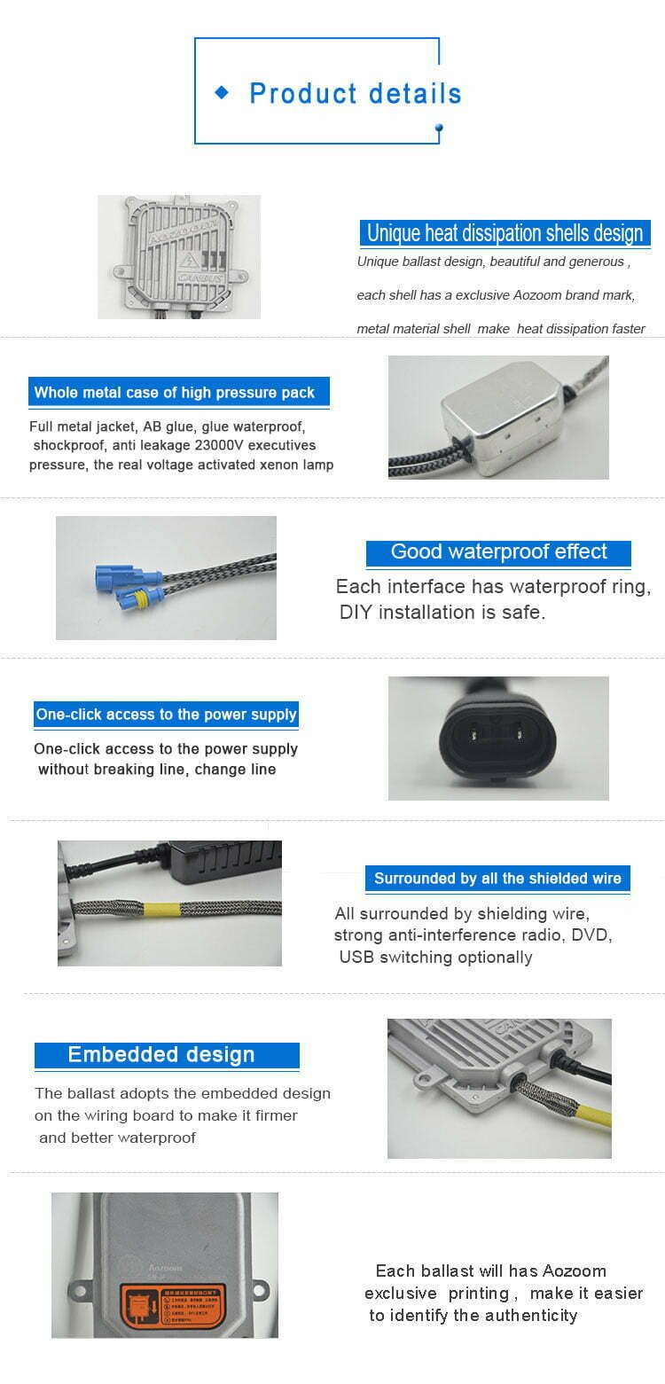 After many years of accumulation in the Asian market, we have made multiple improvements to the product according to the undesirable issues. Now, the defective rate of AOZOOM ballast can be controlled under 0.3%. Moreover, the ballast is power with the constant power, no matter how input voltages changes, our ballast can provide output power stably to the HID bulb, making the variation of output power less than 1%, which can extend the working lifespan of ballast and HID. We provide a 3 years quality assurance and after-sales service for the all ballast series products. If the ballast is broken within 3 years, we will replace a new for you.